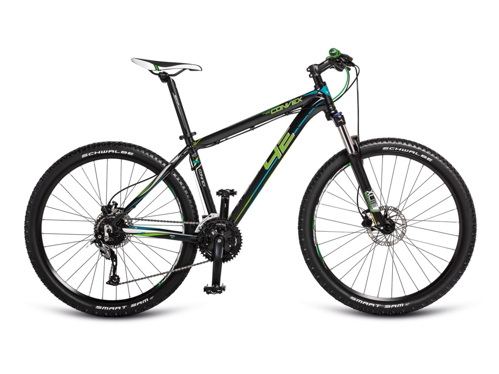 4ever Convex 27,5 je horské kolo s 27,5 palcovými koly, vhodné pro rekreační jezdce. Základ tvoří lehký rám z hliníkové slitiny 7005, odpružená vidlice s plynulým hydraulickým uzamykáním, hydraulické kotoučové brzdy a komponenty Shimano s 3x9 převody.