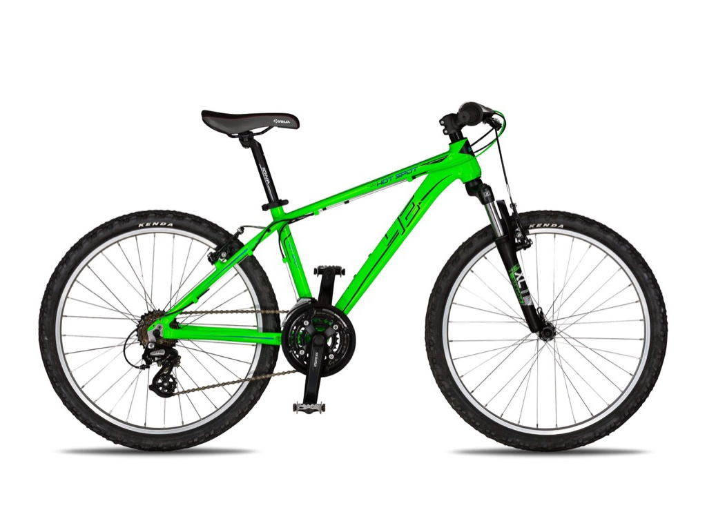4Ever Hot Spot je ideální kolo pro kluky a holky s výškou postavy 125-140 cm, postaveno je na hliníkovém rámu ze slitiny 6061 s odpruženou vidlicí Suntour a osvědčenými komponenty Shimano s 21 převody.