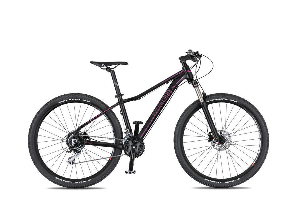 Lehké dámské horské kolo 4Ever Tanya 27,5" Lady je svým atraktivním černo-růžovým designem a výbornou výbavou určeno pro jezdkyně, které si rády vychutnají rekreační projížďku po cyklostezkách, ale i sportovnější jízdu v terénu. Pohodový výlet na cyklostezce i sportovnější jízdu v terénu si skvěle užijete s MTB na 27,5" kolech 4Ever Tanya. Nový lehký hliníkový rám je výborně osazený výbavou Shimano Acera s převody 3x8, spolehlivými hydraulickými brzdami Shimano a vzduchovou uzamykatelnou vidlicí Suntour XCR, nechybí osvědčené sedlo Selle Royal nebo skvělé pláště Schwalbe Smart Sam.