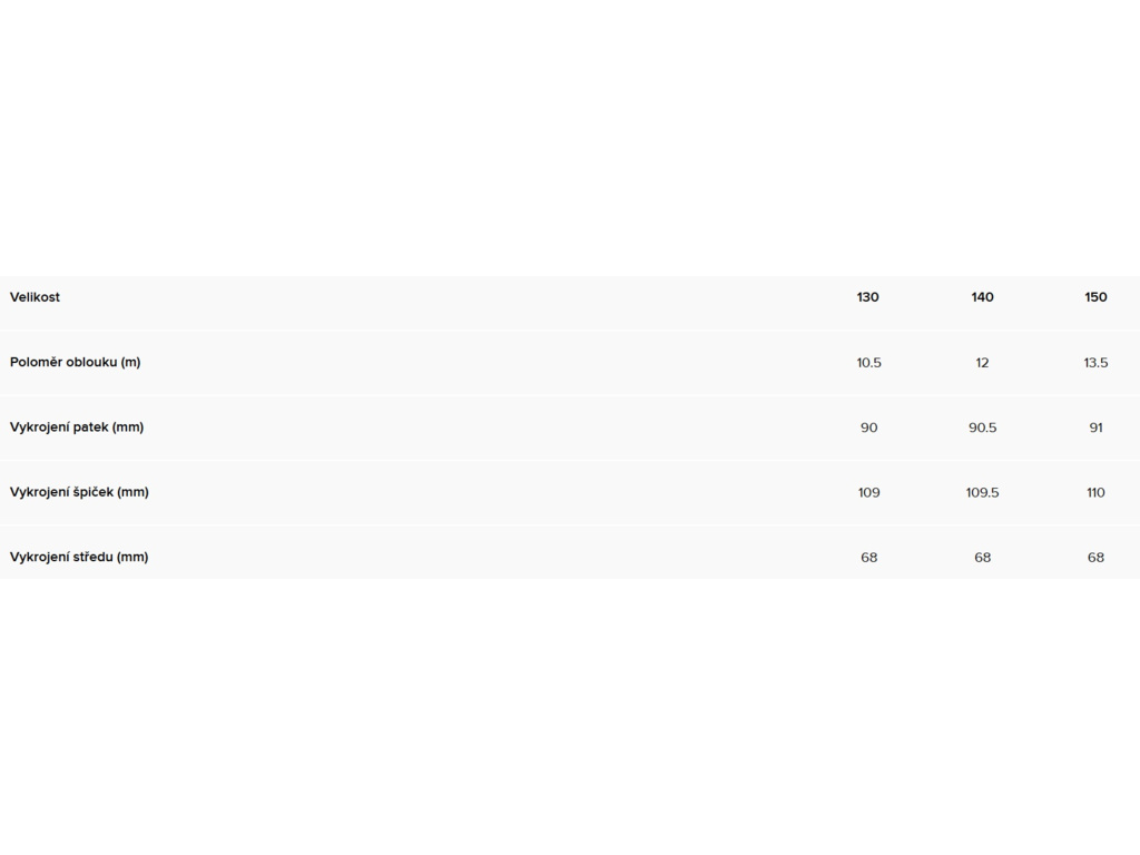 • Hmotnost jedné lyže: 1780 g (140 cm)