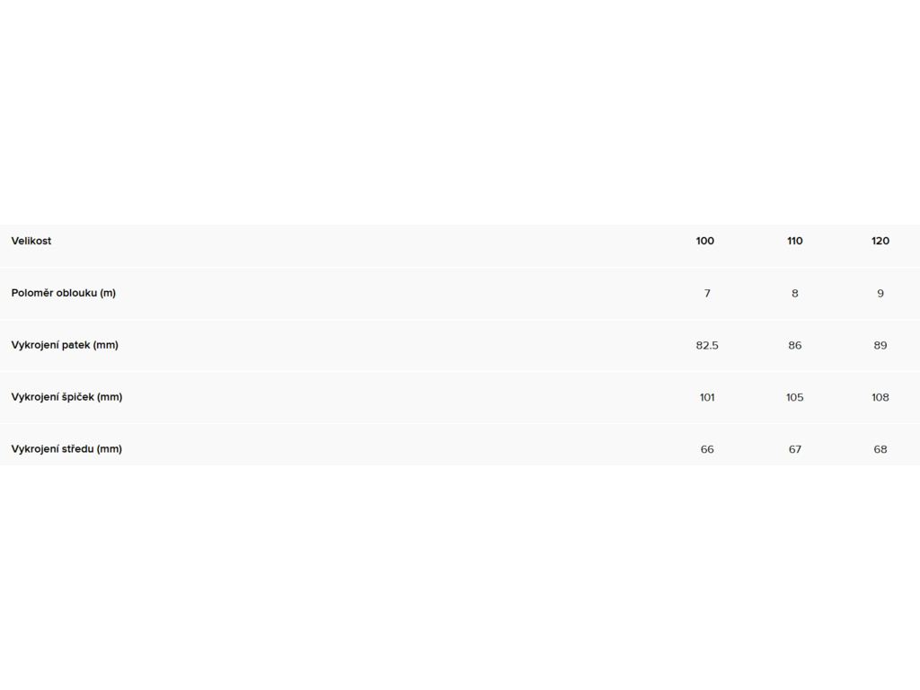 Hmotnost jedné lyže: 1409 g (110 cm)
