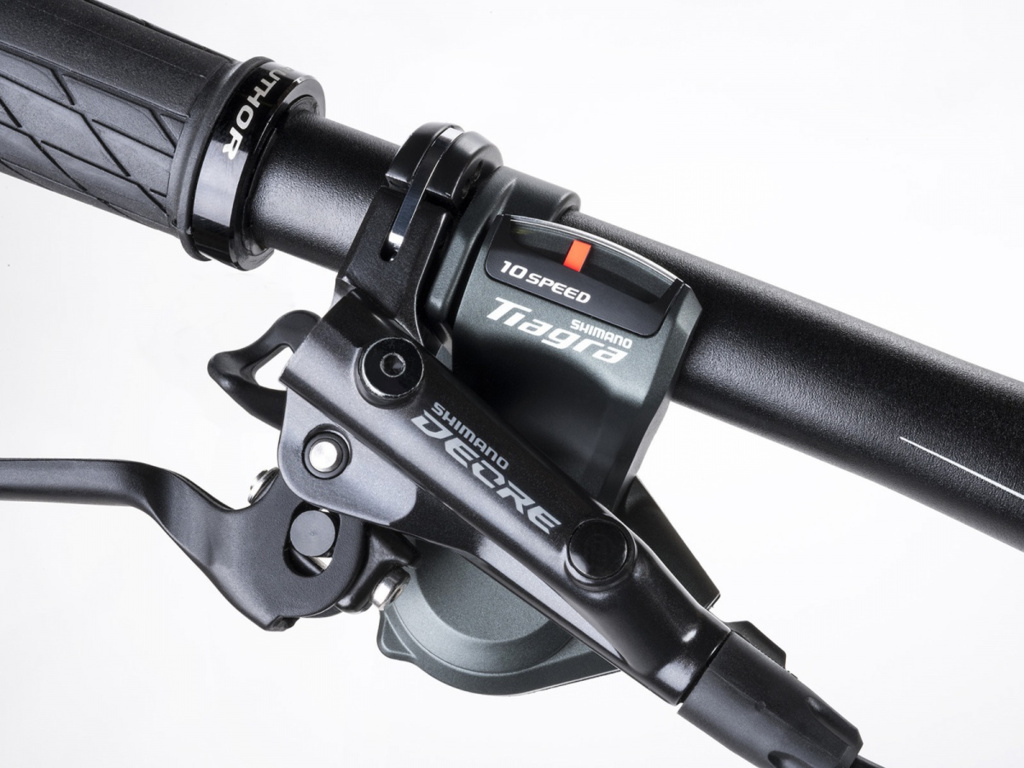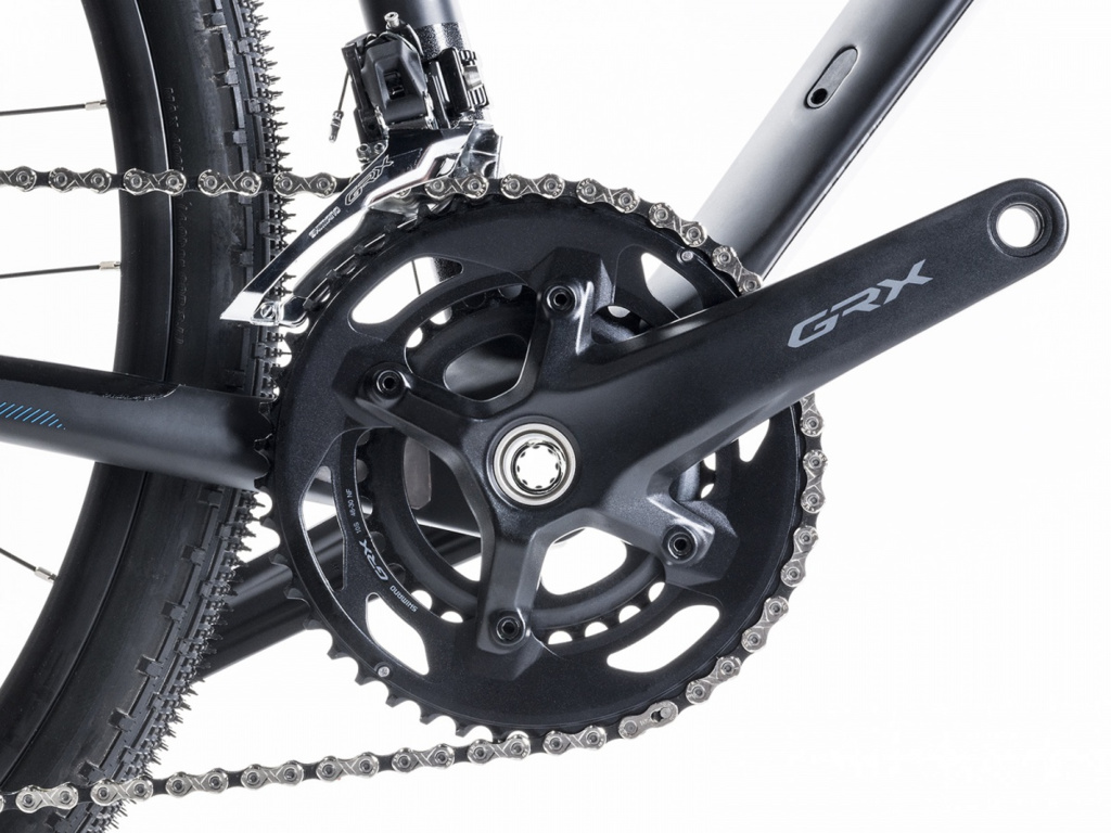 Hmotnost rovných 10 kg, vnitřní vedení hadiček a bovdenů, elegantní design a kvalitní komponenty. To je originální mix vlastností, které tvoří tento jedinečný stroj. Stojí na úrovni kategorií fitness, cross a gravel. Nabízí rychlost a lehkost gravelového kola a zároveň pohodlí a dobré ovládání crossu s rovnými řidítky. O změnu převodů se stará speciální gravelová sada Shimano GRX s dvojpřevodníkem. Brzdí osvědčené hydraulické kotoučové brzdy Deore. Nízký valivý odpor a dobré vlastnosti v lehčím terénu nabízí skládací kevlarové pláště Panaracer GravelKing, které se již staly takřka legendou mezi milovníky rychlých šotolinových cest. Nechybí pevné osy nábojů pro maximální tuhost.
