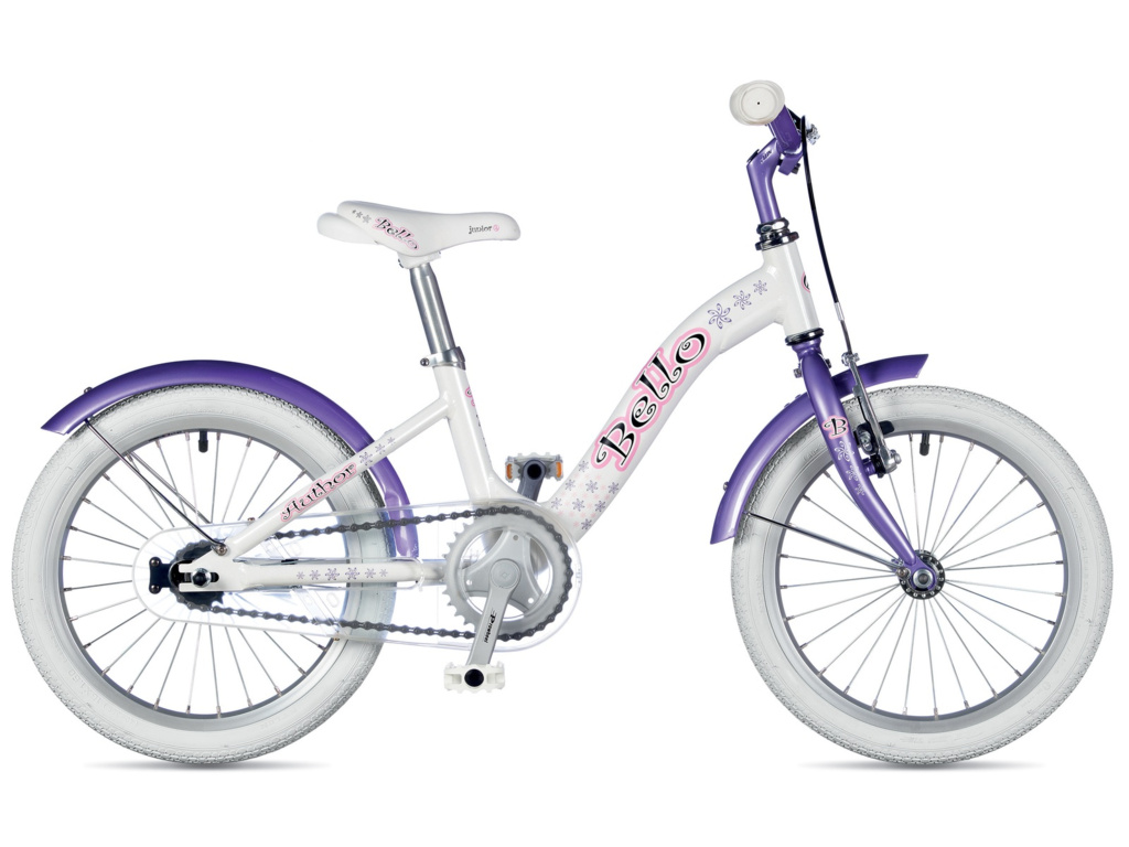 Author Bello je dívčí 16" kolo postavené na lehkém hliníkovém rámu s pevnou vidlicí, vhodné pro děti s výškou postavy od 100 do 120 cm. Vybaveno je i praktickými blatníčky a bezpečnostním krytem řetězu.