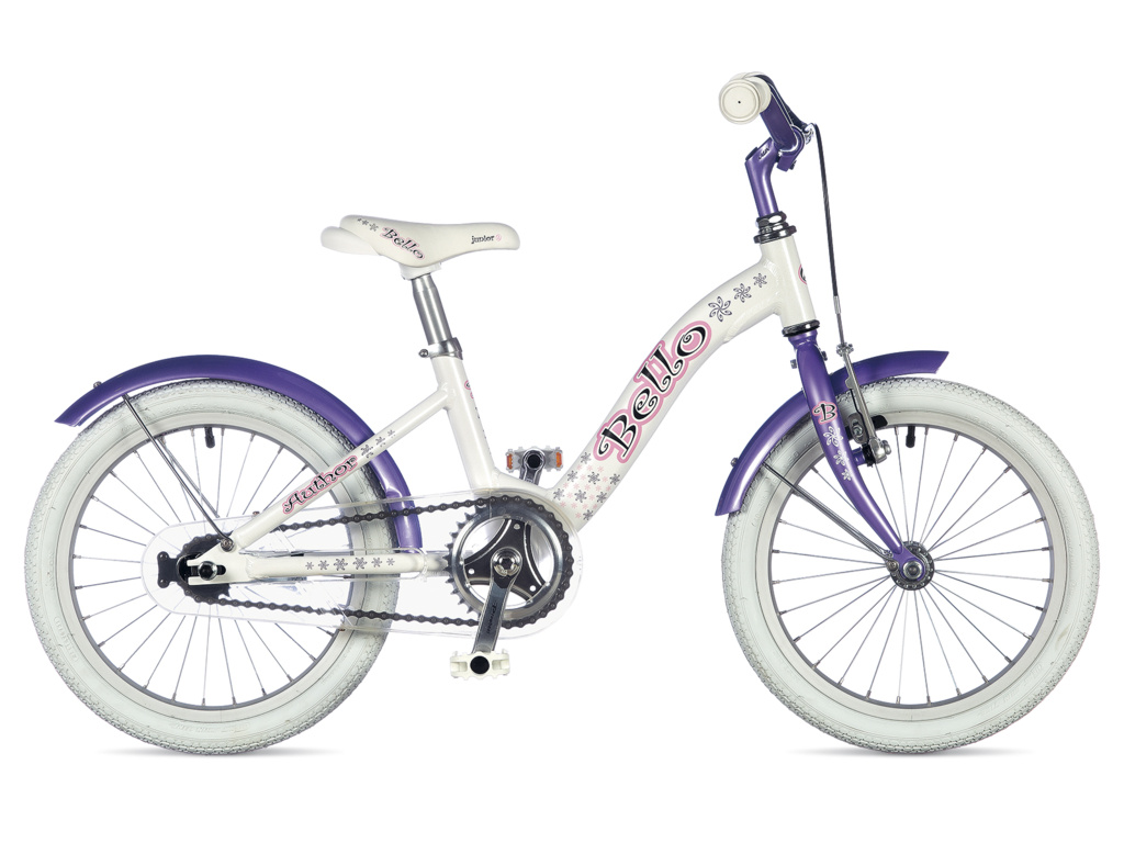 Author Bello je dívčí 16" kolo postavené na lehkém hliníkovém rámu s pevnou vidlicí, vhodné pro děti s výškou postavy od 100 do 120 cm. Vybaveno je i praktickými blatníčky a bezpečnostním krytem řetězu.