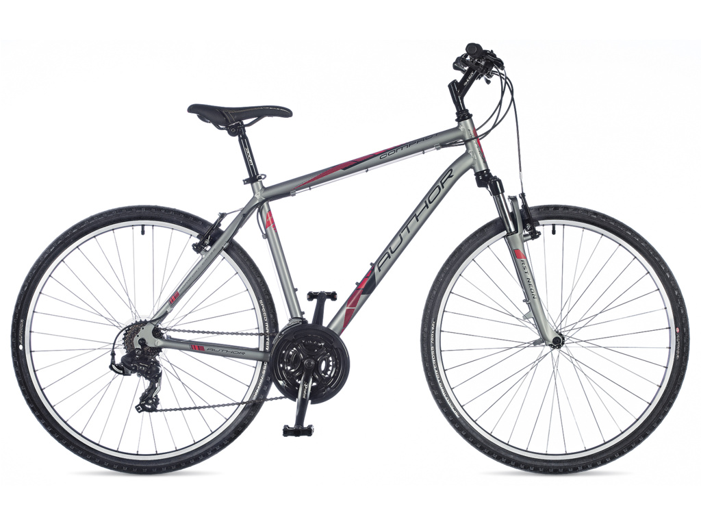 Author Compact je crossové kolo pro rekreační cyklisty. Duralový rám je osazen odpruženou vidlicí RST se zdvihem 60mm, ráfkovými brzdami Tektro a kvalitními komponenty Shimano s 3x7 převody.