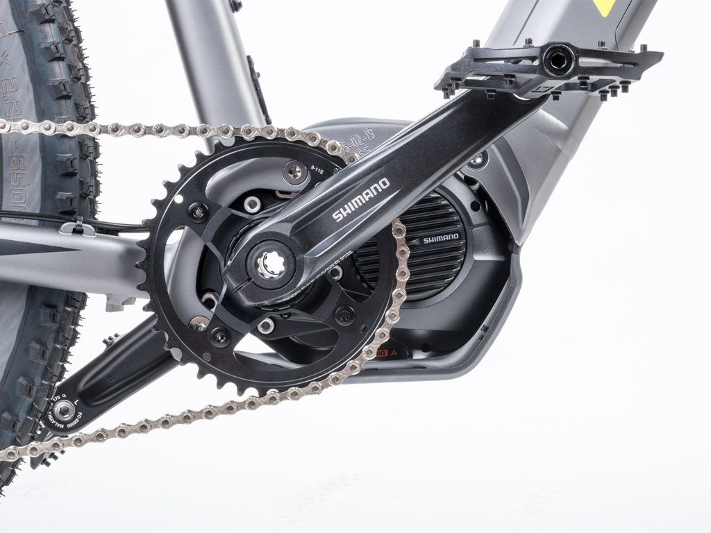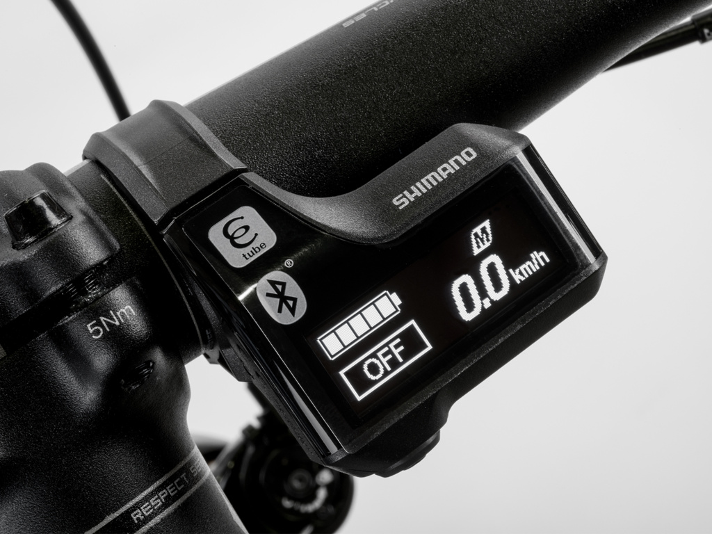Středový motor Shimano Steps E7000 disponuje výkonem 250W a 60 Nm, což z něj dělá ideální kompromis mezi solidním výkonem a vysokým dojezdem. Na řídítkách je umístěn malý displej SC-E7000, který zobrazuje stav nabití baterie, zvolený jízdní režim, aktuální rychlost a další jízdní údaje.