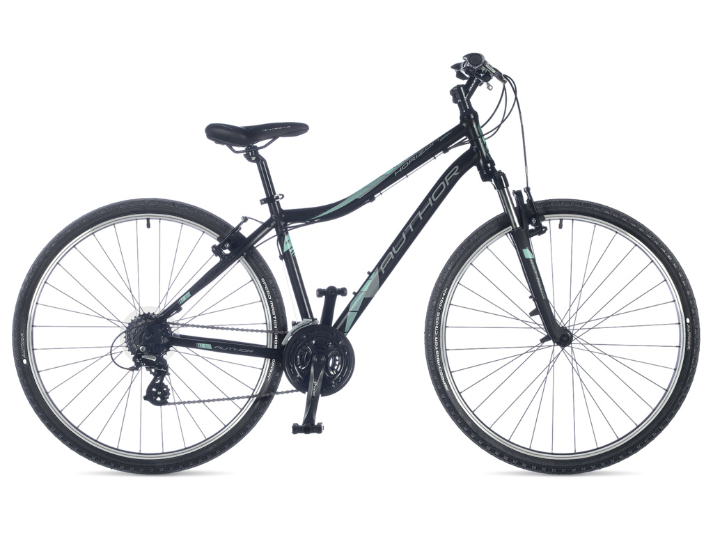 Author Horizon ASL je dámské crossové kolo pro rekreační cyklistky. Duralový rám je osazen odpruženou vidlicí RST se zdvihem 60mm, ráfkovými brzdami Tektro a kvalitními komponenty Shimano s 3x8 převody.