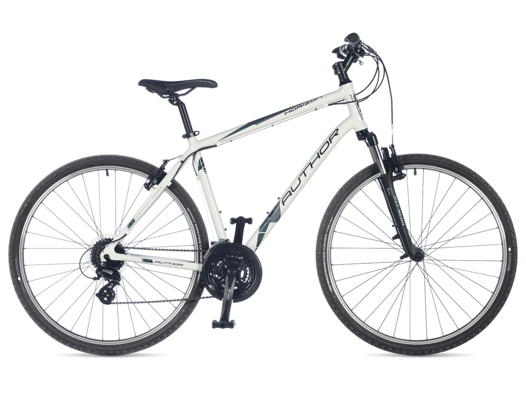 Author Horizon je crossové kolo pro rekreační cyklisty. Duralový rám je osazen odpruženou vidlicí RST se zdvihem 60mm, ráfkovými brzdami Tektro a kvalitními komponenty Shimano s 3x8 převody.