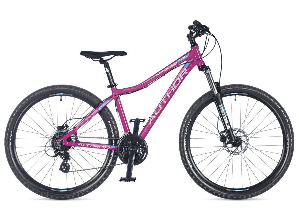 Author Impulse ASL je pěkně osazené dámské 27,5 palcové kolo pro rekreační cyklistky. Duralový rám je osazen uzamykatelnou vidlicí RST, hydraulickými kotoučovými brzdami Tektro kvalitními komponenty Shimano s 3x8 převody.