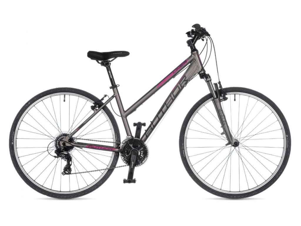 Dámské crossové kolo Author Linea je vhodné pro rekreační cyklistky, které preferují více pohodlí na silnicích a cyklostezkách. Pro maximální komfort je vybaveno odpruženou vidlicí, komfortním sedlem, ergogripy a spolehlivým řazením s 3x8 převody.