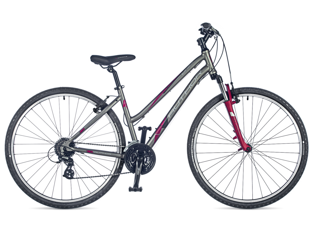 Pěkně osazené dámské crossové kolo Author Linea je vhodné pro rekreační cyklistky, kteří však preferují více pohodlí, to zaručí odpružená vidlice. Lehký duralový rám je osazen odpruženou vidlicí RST se zdvihem 60mm, ráfkovými brzdami Tektro a kompone
