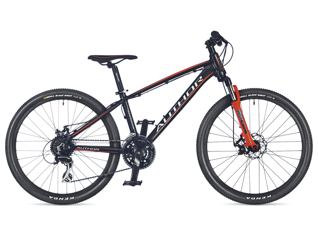 Author Mirage 24 je velmi dobře vybavené kolo pro děti s výškou postavy od 125 do 150 cm. Třikrát zeslabovaný hliníkový rám je osazen odpruženou vidlicí RST Capa, hydraulickými kotoučovými brzdami Tektro a řazením Shimano s 3x8 převody.