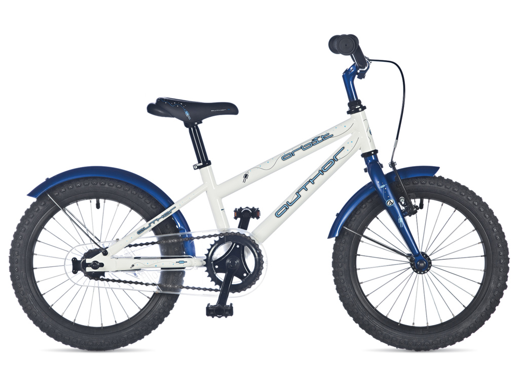 Author Orbit je chlapecké 16" kolo postavené na ocelovém rámu s pevnou vidlicí, vhodné pro děti s výškou postavy od 100 do 120 cm. Vybaveno je i praktickými blatníčky a bezpečnostním krytem řetězu.