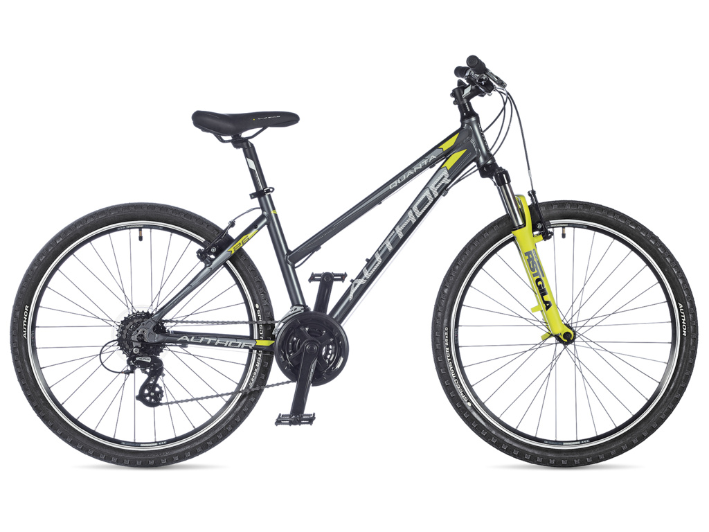 Dámské horské kolo Author Quanta je vhodné pro rekreační jízdu. Tento model zaujme pěkným designem, má duralový rám s odpruženou vidlicí RST Capa se zdvihem 80mm, komponenty Shimano s 3x7 převody a ráfkovými brzdami.