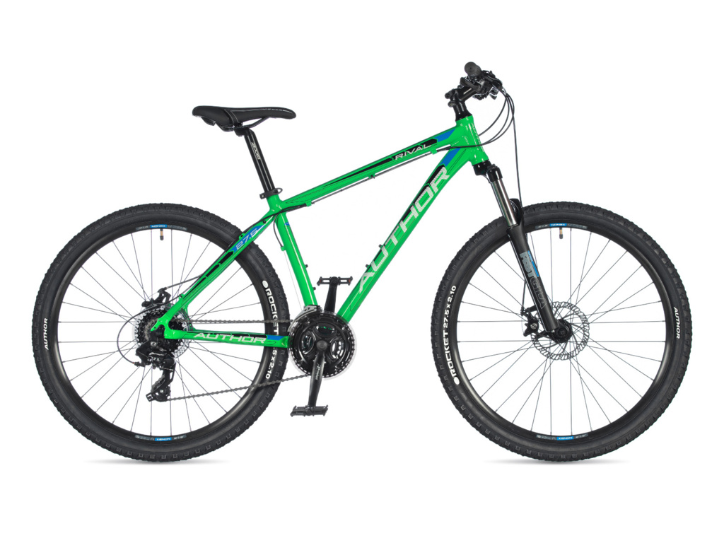 Author Rival je model, postavený na 27.5 palcových kolech, vhodný pro rekreační nenáročné jezdce. Osvědčený lehký hliníkový rám je osazen odpruženou vidlicí RST Gila, mechnickými kotoučovými brzdami a komponenty Shimano s 3x8 převody.