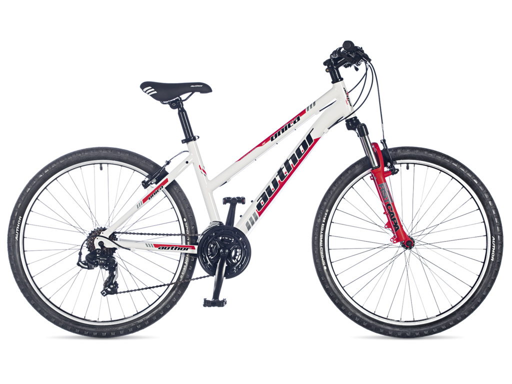 Základní dámské horské kolo Author Unica je vhodné pro rekreační jízdu. Tento model má duralový rám s odpruženou vidlicí RST Capa se zdvihem 80mm, komponenty Shimano s 3x7 převody a ráfkovými brzdami.