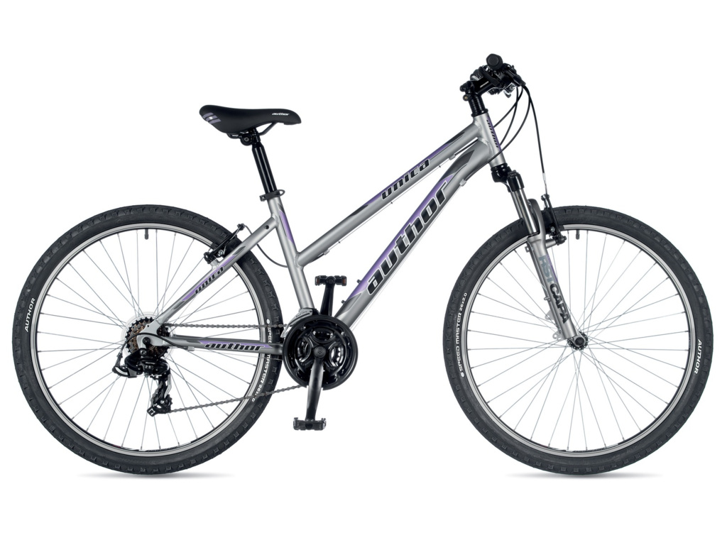 Dámské horské kolo Author Unica na duralovém rámu, s odpruženou vidlicí RST Capa a 26 palcovými koly.