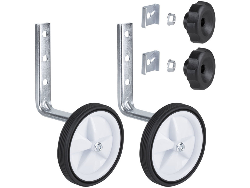 Sklápěcí balanční kolečka pro dětská kola velikosti, snadná montáž a fixace pomocí příbalených příložek.