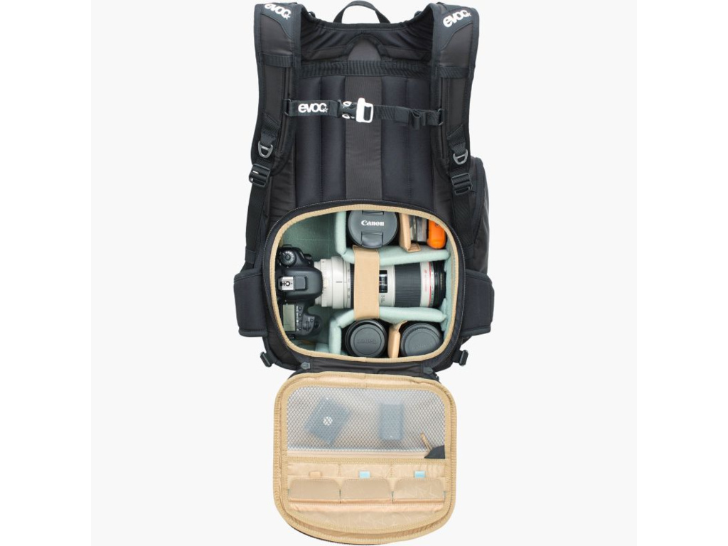 EVOC CP 18 litrů je plně vybavený foto batoh pro profesionální, sportovní fotografy a kameramany. Náš batoh umožňuje dokonalou ochranu fotoaparátu během natáčení, a to i v obtížném terénu.