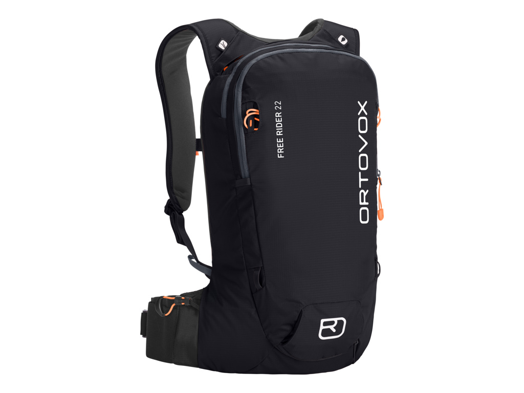 ORTOVOX Free Rider 22 l je určen jak pro lyžaře, tak pro snowboardisty, kteří chtějí batoh na ty nejnáročnější sjezdy. Chlubí se možností vložení certifikovaného chrániče páteře Clasp Spine Protector (chránič není součástí balení) pro vaši maximální ochranu. Hmotnost batohu je pouhých 1000 g. Má široký bederní pás, který snadno nastavíte a následně dotáhnete pomocí integrovaného stahovacího systému Clasp Flex Blet. Široké a pohodlné ramenní popruhy lépe rozloží hmotnost batohu mezi vaše ramena, záda a bedra. Zádový systém je tvořen vycpávkami z paměťové pěny v 6 zónách. Do hlavní komory se dostanete přes záda. Jednoduše položíte batoh čelem do sněhu a otevřeš jako kufr – vše je přehledně vidět. Naleznete zde přihrádku na rezervoár vody a výstup na hadičku, která vede do ramenního popruhu. Komora je dostatečně prostorná na vybavení, které potřebujete udržet v suchu. Druhá komora slouží jako bezpečnostní lavinová kapsa. Mokré vybavení je pak oddělené od zbytku věcí. Kapsa má úmyslně oranžová poutka zipů, aby byla ihned na očích v případě nouze. Ve spodní části batohu je možnost uchytit přilbu.