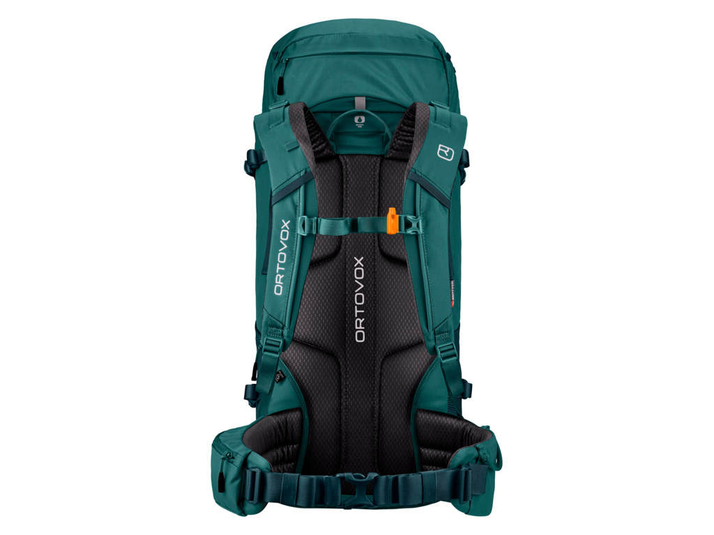 Batoh je extrémně odolný díky hustě tkanému Nylon 420HD Ripstop a Nylon 420D Manstar s vysokou odolností vůči oděru. Je také vysoce odolný vůči vodě a velmi rychle schne. ORTOVOX si je kvalitou jistý, a proto na něj dostanete prodlouženou pětiletou záruku. Na výškově nastavitelném hrudním popruhu je píšťalka pro signalizaci. Víko batohu má všitou kapsičku s EMERGENCY CARD – kartička s osobními a zdravotními údaji. Bederní pás má poutko na přídavný materiál.