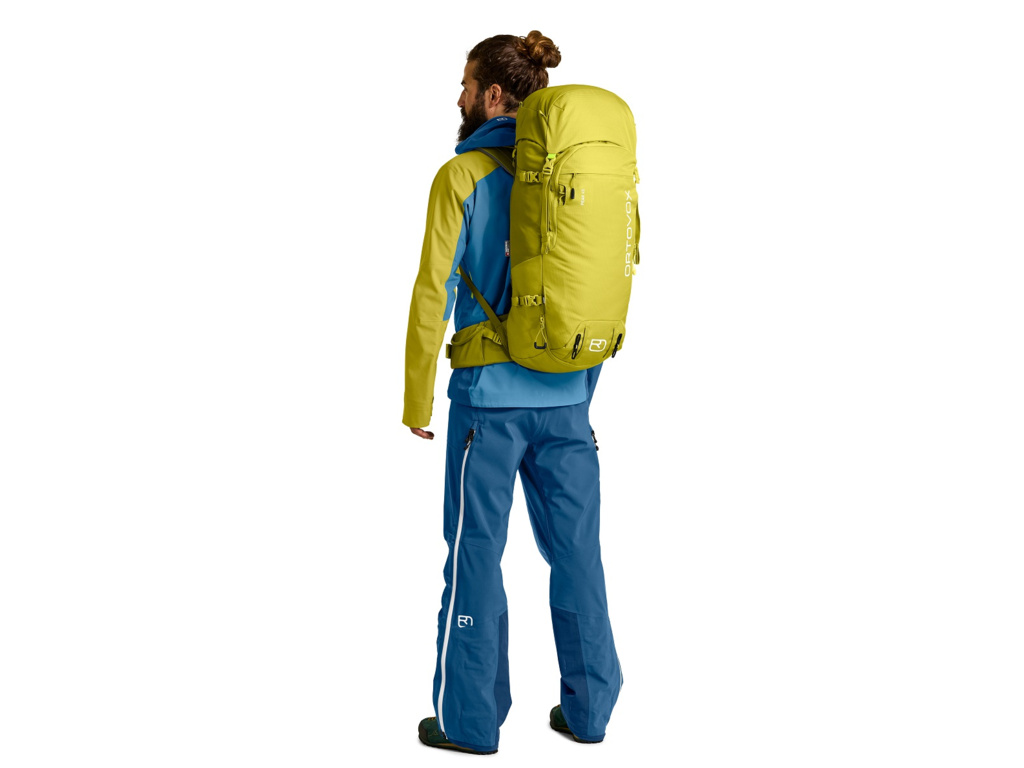 Propracovaný batoh ORTOVOX Peak 45L na vícedenní vysokohorskou turistiku a skialpinismus s možností upnutí maček, cepínů, lyží, přilby a dalšího vybavení.