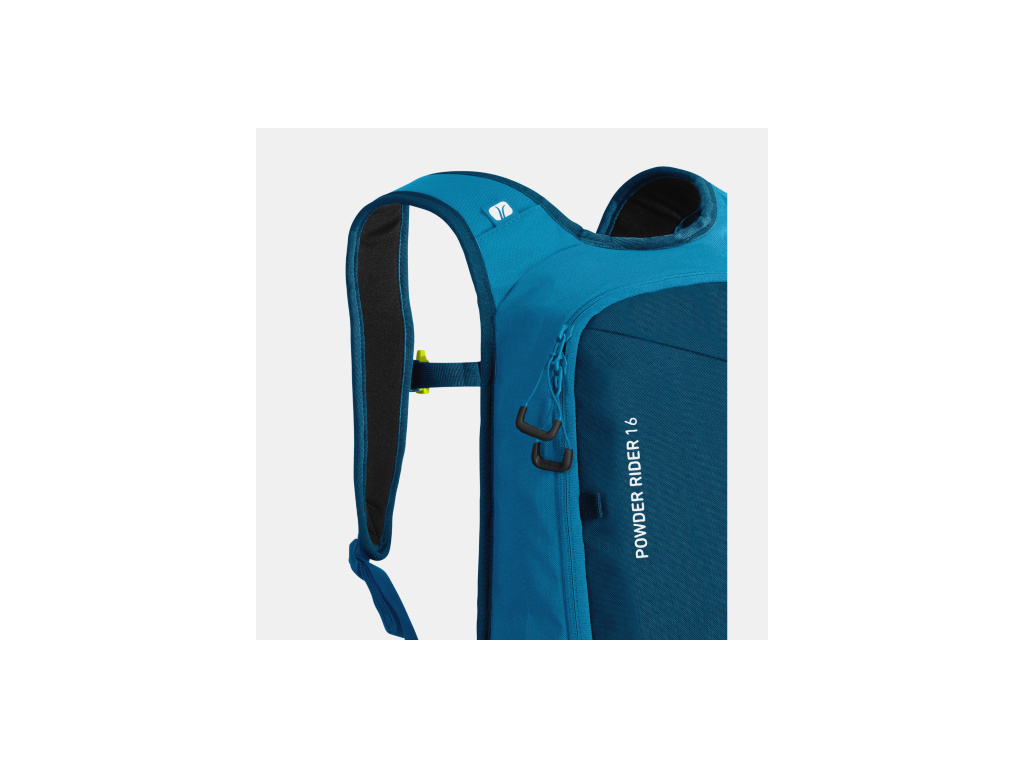 ORTOVOX Powder rider 16 l je špičkový batoh, který kombinuje minimalismus s plnou výbavou do volného terénu. Díky nízké hmotnosti (660 g), promyšleným technickým prvkům a zádovému systému, si na něj při sjezdech ani nevzpomenete. Vše důležité vybavení přitom budete mít vždy po ruce. Perfektně se hodí především na kratší skialpinistické výlety či jakoukoliv jinou zábavu v prašanu. Bez problému se do něj vejde jak bezpečnostní lavinové vybavení, tak všechny nezbytné drobnosti. Mezi jeho hlavní prvky patří prostor pro uložení lavinové výbavy, kompatibilita s hydratačními systémy a možnost diagonálního připnutí lyží (do šířky 150 mm). Každá kapsa na batohu má svůj účel a dovoluje vám mít věci ihned po ruce pro rychlou manipulaci. Prostor uvnitř hlavní komory slouží pro uchycení lavinového vybavení – lopaty a sondy – a také kapsu na láhev vody nebo rezervoár a sponu na připevnění. Přední kapsička na zip je určena na mapu a buzolu. Vnitřní kapsa s emergency card a poutkem na klíče slouží na uložení drobností – doklady, hotovost a cennosti. Síťka na přilbu je uložena vpředu batohu s praktickým zipem.