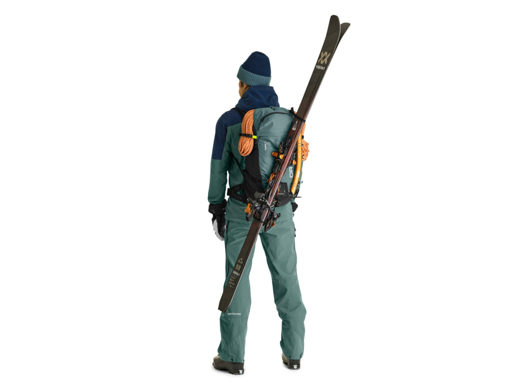 Milujete rychlé výšlapy a náročné sjezdy? Chcete ušetřit vteřiny, ale nechcete obětovat svůj komfort a bezpečnost? Potom je batoh ORTOVOX RAVINE 34 pro vás jako stvořený. Batoh je velmi lehký, váží pouhých 950 g, je technicky propracovaný, připevníte na něj veškeré potřebné vybavení a pro urychlení výstupu v náročném terénu z něj vyberete mačky a připnete na něj lyže, aniž by jej bylo třeba skládat ze zad.