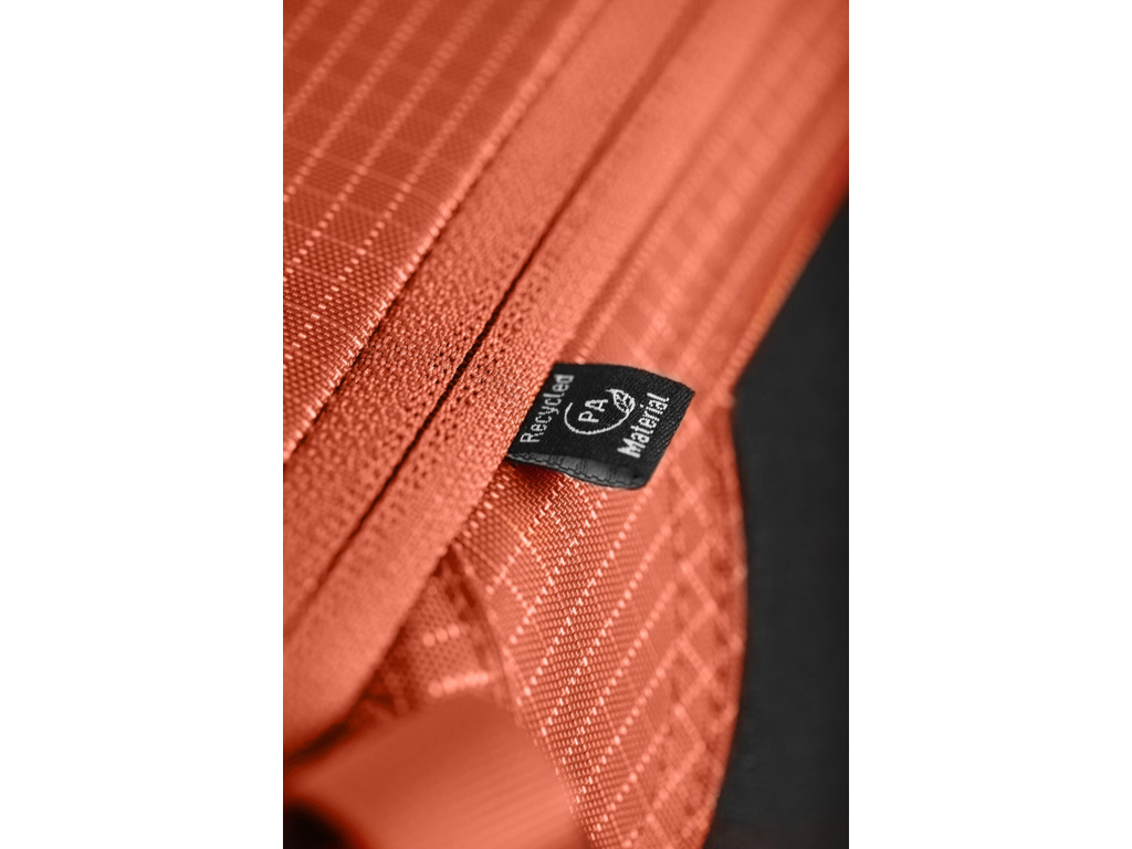 Batoh je vyroben z pevného a odolného recyklovaného polyamidu. Pevnost je zvýšená RIPSTOP zpracováním a vodoodpudivou DWR úpravou. Batoh vydrží po mnoho let ve stejných barvách. Do materiálu batohu je přidáván UV stabilizátor, který zabraňuje vyblednutí barev.