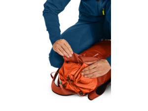 Rychlé a jednoduché stažení – horní vstup do batohu stáhneš pomocí integrované šňůrky v límci s rychlostním zámkem. Jednoduše stačí stáhnout, zaklopit víko a batoh je pevně uzavřen. Zatažením plastové spony zámek uvolníš a otevřeš batoh. Je to opravdu jednoduché a rychlé.