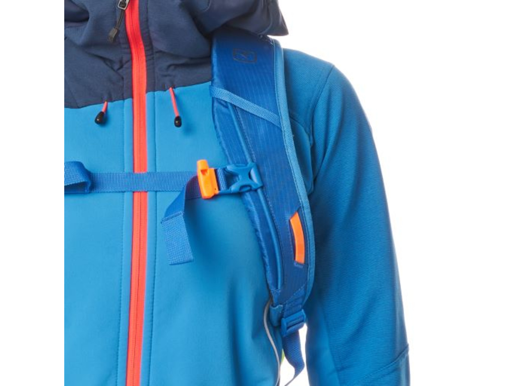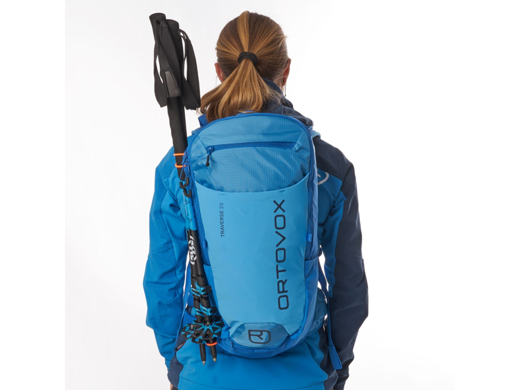 ORTOVOX Traverse 20 l je propracovaný turistický batoh chlubící se polstrovaným zádový systém i popruhy s důmyslným odvětráním. Sedí i při těžším nákladu, a přitom nechává proudit vzduch pro váš komfort při nošení. Když přijde nepříznivé počasí, své věci ochráníte praktickou integrovanou pláštěnkou. Ta slouží jako dodatečná ochrana batohu, který je vyroben z robustního voděodolného materiálu, tvořeného z 72 % recyklovaného polyamidu, zároveň tak šetříte životní prostředí. Praktické jsou elastické kapsy i možnost uchycení hůlek či integrovaná síťka na helmu.