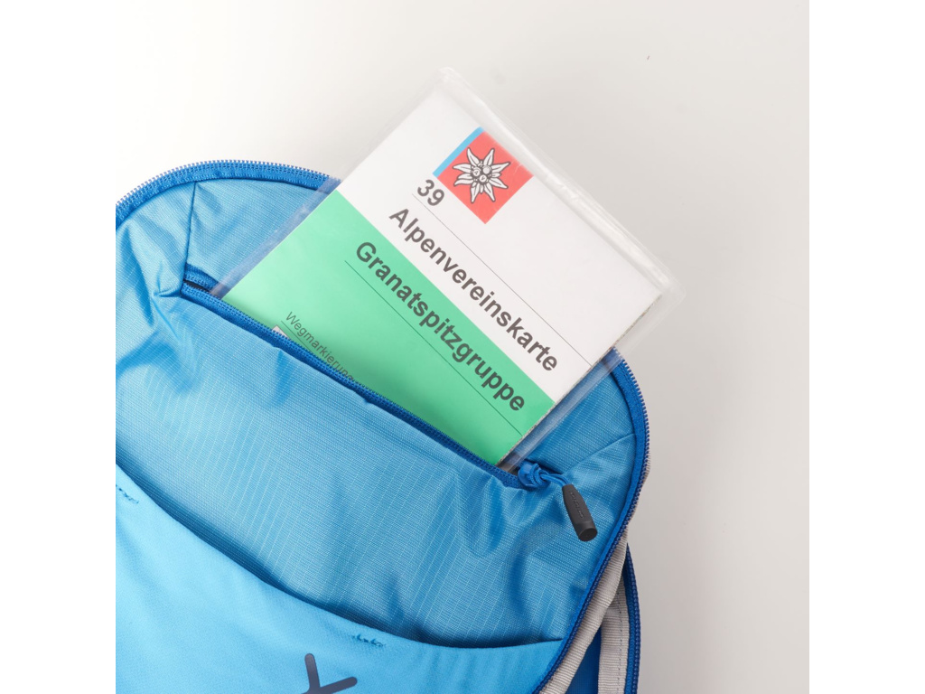 Hlavní kapsa se vstupem na zip je určena pro náhradní oblečení, jídlo a další vybavení. V hlavní komoře je kapsa na rezervoár vody s možností vyvést hadičku ve středu mezi ramenními popruhy, na kterém je praktické poutko k jeho uchycení. Přední menší kapsa slouží na jakékoli věci, které chcete mít po ruce např. mapu. Foťák nebo mobil můžete uschovat do bederní kapsy.
