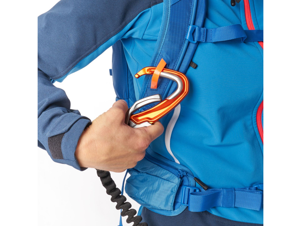 Hlavní kapsa se vstupem na zip je určena pro náhradní oblečení, jídlo a další vybavení. V hlavní komoře je kapsa na rezervoár vody s možností vyvést hadičku ve středu mezi ramenními popruhy, na kterém je praktické poutko k jeho uchycení. Přední menší kapsa slouží na jakékoli věci, které chcete mít po ruce např. mapu. Foťák nebo mobil můžete uschovat do bederní kapsy.