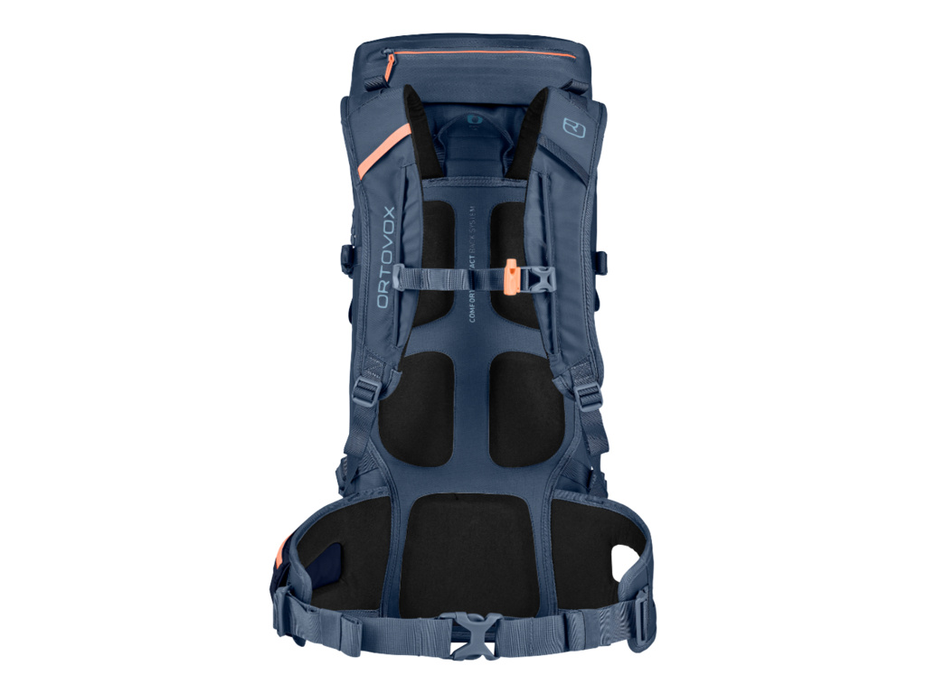 Zádový systém COMFORT CONTACT BACK SYSTEM je tvořen v zónách pěti polštářů a prostorem mezi nimi, který je důležitý pro lepší cirkulaci vzduchu. Zádový systém přenáší zatížení batohu rovnoměrně mezi ramena a bedra. Pro maximální fixaci má batoh bederní i hrudní popruh. Součástí hrudního popruhu je výstražná píšťalka.