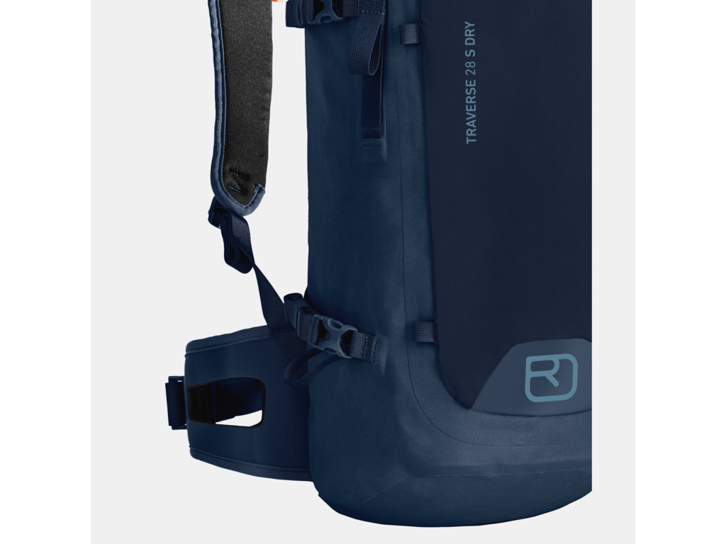 ORTOVOX Traverse 28 l je všestranný nepromokavý batoh na náročnou turistiku v létě i zimě. Polstrovaný zádový systém i popruhy s důmyslným odvětráním vám pohodlně sedí i při těžším nákladu, a přitom nechávají proudit vzduch pro váš vyšší komfort při nošení. Když přijde nepříznivé počasí, vaše věci jsou díky nepromokavému materiálu (více než 50 000 mm) v bezpečí. Praktická je možnost odepnutí vrchního víka nebo uchycení hůlek či integrovaná síťka na helmu. V hlavní komoře je kapsa na rezervoár vody s možností vyvést hadičku ve středu mezi ramenními popruhy, na kterém je praktické poutko k jeho uchycení. Uvnitř hlavní komory je malá skrytá kapsa na doklady, cennosti a hotovost. Boční stahovací popruhy využijete pro zmenšení batohu nebo k uchycení vybavení příp. lyží. Model i přesto stále dosahuje nízké váhy (pouhých 1220 g) a díky použitým materiálů a technologiím je i velmi odolný a pevný.