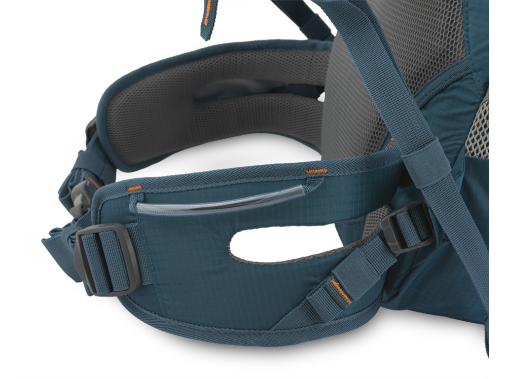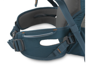 Vychytávkou je výškově nastavitelný a odepínatelný hrudní popruh s píšťalkou pro případ nouze, odlehčený bederní pás pro lepší přilehnutí k bokům a lepší ventilaci. Také poutko na materiál na levé straně bederního pásu a zipová kapsa na pravé straně bederního pásu.