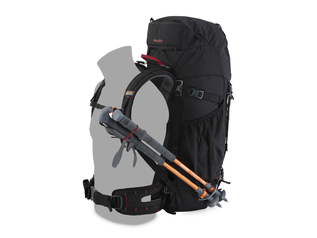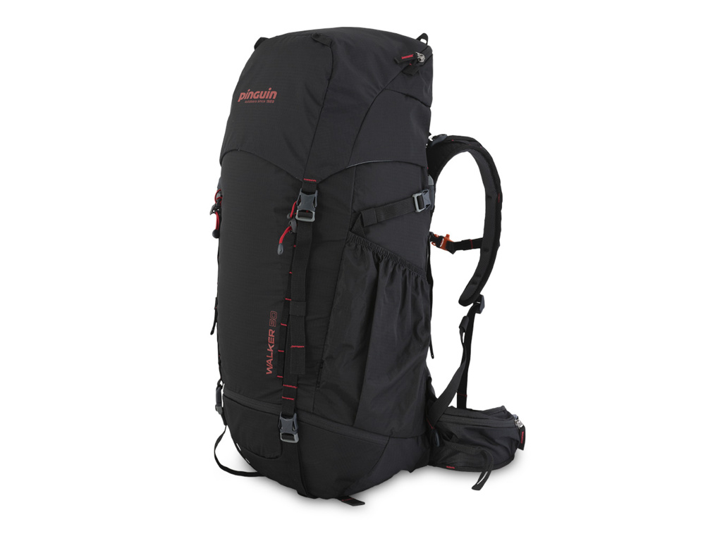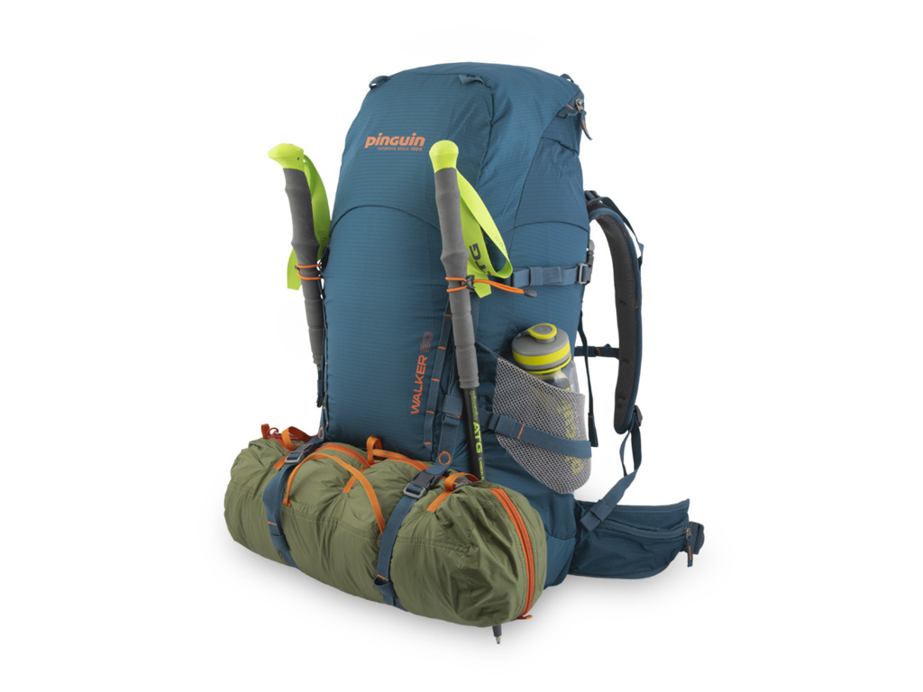 PINGUIN Walker 50 je objemný turistický batoh se dvěma komorami pro oddělení přepravovaného vybavení podle četnosti jeho používání a možnost propojení obou komor v jednu rozepnutím přepážky. Zip spodní komory je jištěn párem popruhů s možností připevnění dodatečného materiálu (např. stan). Přepážka na oddělení vodního rezervoáru od přepravované výbavy je uvnitř hlavní komory. Odvětraný zádový systém E3D udržuje těžiště batohu co nejblíže zad a zajišťuje jejich maximální odvětrání. Záda batohu jsou vyztužena vyjímatelnou HDPE deskou s integrovanou duralovou výztuží, která pomáhá rozložit hmotnost přepravovaného nákladu na záda a eliminuje tlaky přepravovaných předmětů do zad. Ramenní popruhy se zesíleným polstrováním v ramenní části slouží pro ještě větší komfort při transportu těžkého nákladu – jsou v horní části perforované pro zvýšení prodyšnosti. Snadno odepínatelné prostorné víko batohu se dá použít jako ledvinka nebo taška přes rameno.