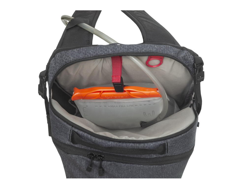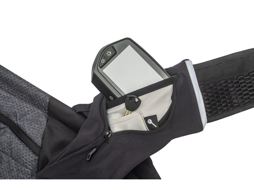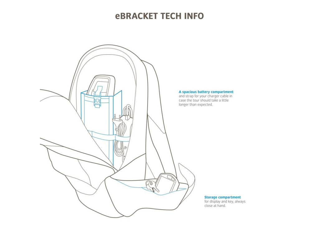 VAUDE eBracket 28 je důmyslně navržený batoh pro cyklistiku na elektrokolech. Poskytne vám dostatek pohodlí i prostoru pro vše potřebné – od náhradní baterie až po cyklistickou přilbu. Batoh je dešti odolný, jeho svrchní úprava je navržena s Eco Finish, které je šetrné k životnímu prostředí a bez fluorovaných uhlovodíků. Můžete se těšit na prostornou hlavní kapsu, oddělenou přihrádku pro náhradní baterii (až do velikosti 50 cm), kapsu pro vodní rezervoár, postranní kapsičku na mini pumpu a boční síťované kapsy. Samozřejmostí je možnost připnutí cyklistické přilby hrudní a boční kompresní popruhy. Reflexní prvky zvýší vaši viditelnost a integrovaná pláštěnka vás ochrání před nepříznivým počasím.