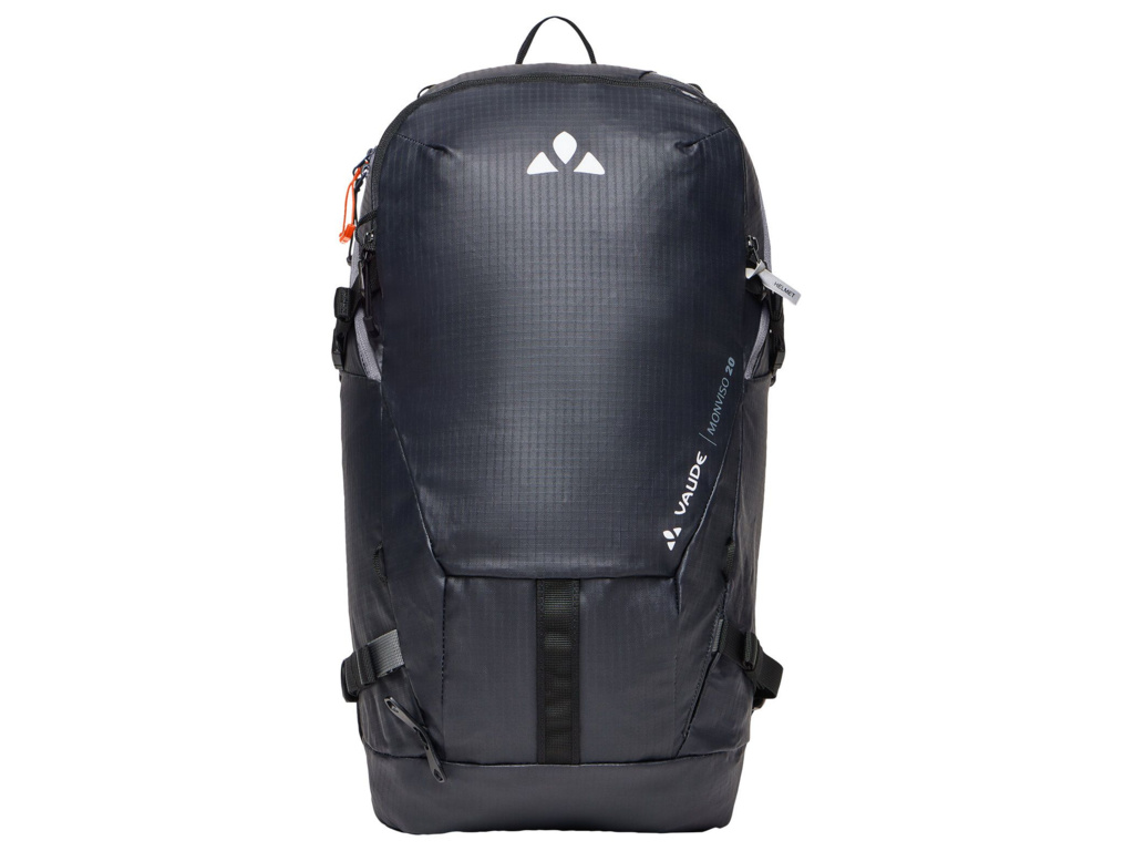 Vaude Monviso 20 je kompaktní batoh s objemem 20 litrů, ideální pro skialpové výpravy. Díky štíhlému designu batoh perfektně sedí na těle a zajišťuje pohodlnou jízdu. Hlavním materiálem použitým na výrobu batohu je 100% recyklovaný polyamid. Batoh nabízí všestranné možnosti uchycení lyží a snowboardu, včetně diagonálního a bočního uchycení lyží a předního uchycení prkna. Batoh je vybaven tvarovaným zádovým panelem odolným proti sněhu a ergonomickými výztuhami ErgoShape pro optimální volnost pohybu. Hlavní přihrádka má kapsy na lavinové vybavení a také vnitřní kapsu na zip. Je také vybaven dalšími prvky, jako je výsuvný držák na helmu, polstrovaná kapsa na brýle, upevňovací bod na ledové nářadí a boční kompresní popruhy. Batoh má hrudní popruh s píšťalkou a informační panel pro případ nouze v horách uvnitř hlavní komory.