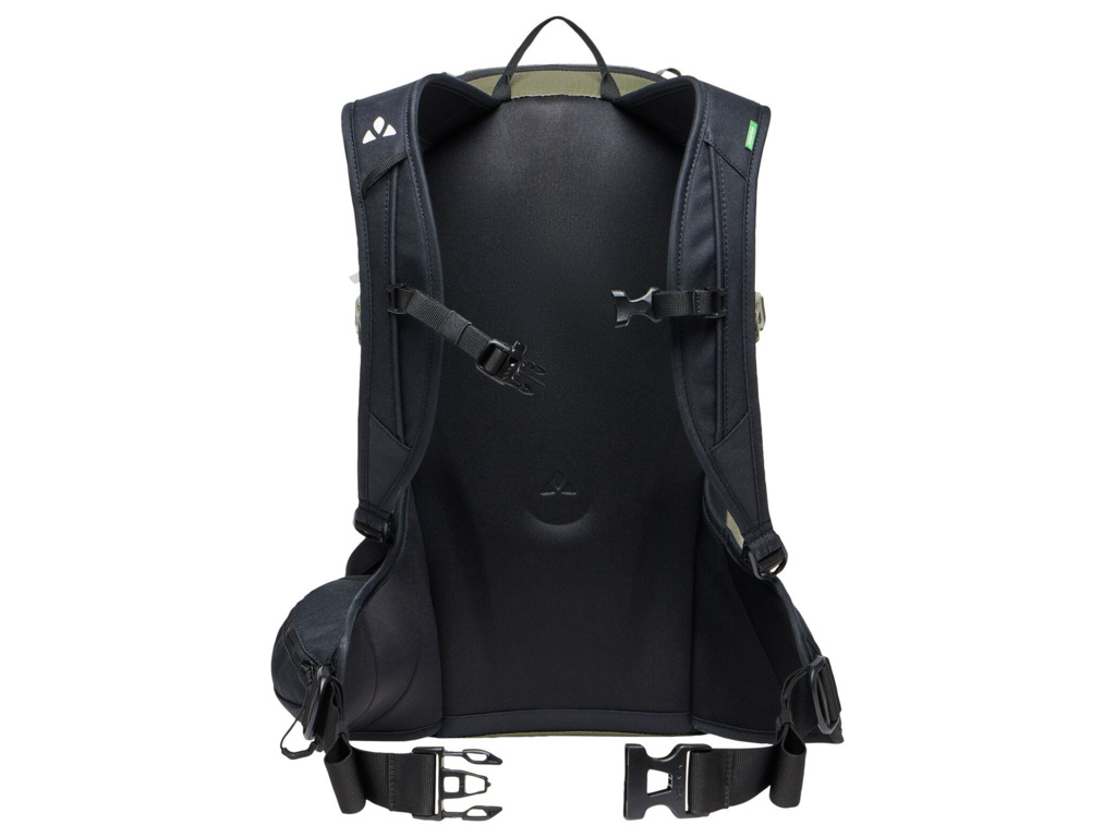Vaude Monviso 20 je kompaktní batoh s objemem 20 litrů, ideální pro skialpové výpravy. Díky štíhlému designu batoh perfektně sedí na těle a zajišťuje pohodlnou jízdu. Hlavním materiálem použitým na výrobu batohu je 100% recyklovaný polyamid. Batoh nabízí všestranné možnosti uchycení lyží a snowboardu, včetně diagonálního a bočního uchycení lyží a předního uchycení prkna. Batoh je vybaven tvarovaným zádovým panelem odolným proti sněhu a ergonomickými výztuhami ErgoShape pro optimální volnost pohybu. Hlavní přihrádka má kapsy na lavinové vybavení a také vnitřní kapsu na zip. Je také vybaven dalšími prvky, jako je výsuvný držák na helmu, polstrovaná kapsa na brýle, upevňovací bod na ledové nářadí a boční kompresní popruhy. Batoh má hrudní popruh s píšťalkou a informační panel pro případ nouze v horách uvnitř hlavní komory.