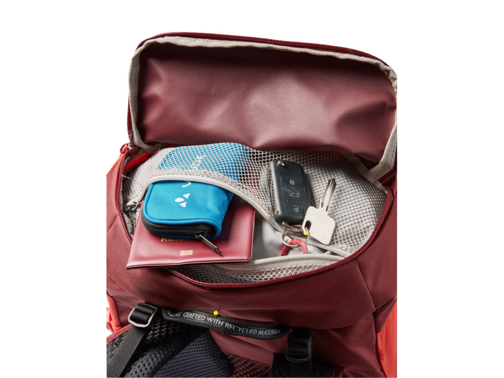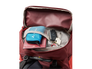 Polstrovaný bederní pás s kapsou, kapsa na zip ve víku batohu, boční kompresní popruhy, 2 boční strečové kapsy, jeden bod uchycení na hůl, uchycení pro brýle na ramenním popruhu, otvor pro hydratační systém, hrudní popruh, klíčenka, součástí balení je