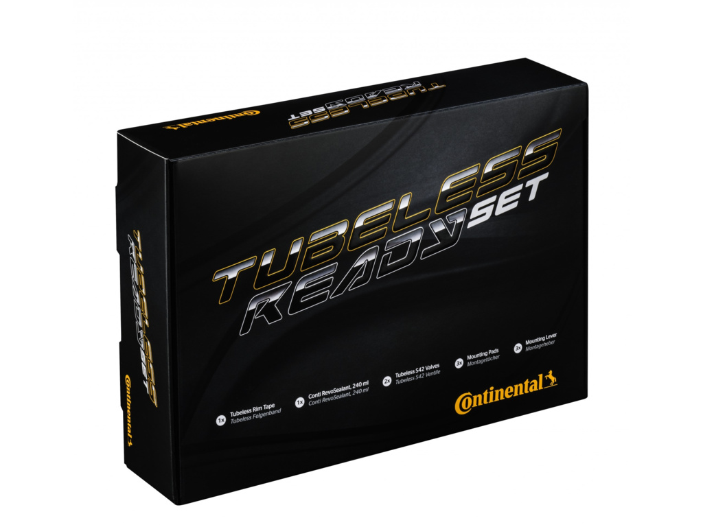 Obsahuje: 1x pásku do ráfku 1x tmel Conti RevoSealant 240ml 2x bezdušové ventilky S42 3x čistící ubrousek 3x montpáka