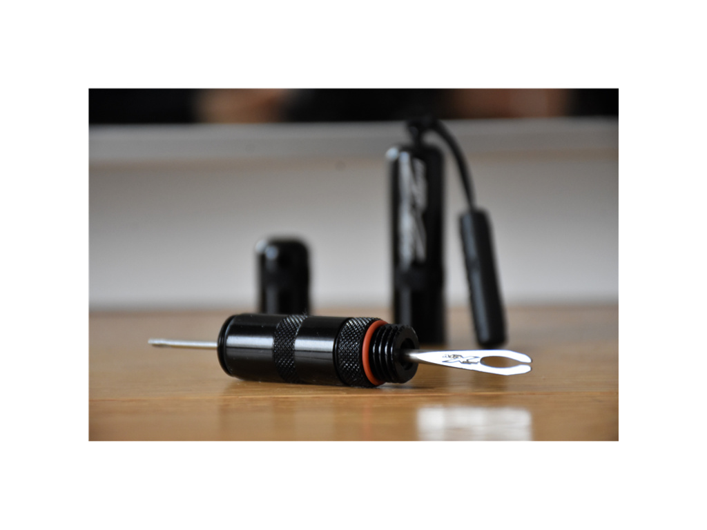 Větší vidlička je vhodná pro bezdušové MTB knoty o průměru 3,5 mm. Malá vidlička je navržena pro silniční nebo gravel pláště a také pro menší poškození MTB plášťů. Kompatibilní s běžnýmí knoty na trhu, včetně Maxalami.