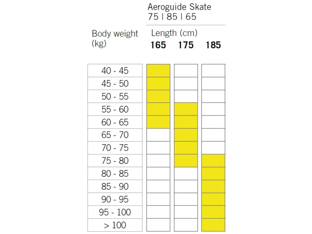 Fischer Aeroguide Skate 85 jsou zcela nové, mimořádně lehké skate běžky navržené pro rekreační a aktivní lyžaře, kteří chtějí zlepšovat svou techniku a zároveň si užít stabilní a jistou jízdu. Vylepšené vykrojení poskytuje lepší přilnavost na hraně a usnadňuje odraz, což je ideální pro ty, kteří si bruslení postupně osvojují. Dvojité podélné drážky zvyšují stabilitu při skluzu a přispívají ke klidnému, kontrolovanému vedení lyže. Kratší doporučené délky lyží podporují snadnou ovladatelnost, což pomůže zejména méně zkušeným běžkařům.