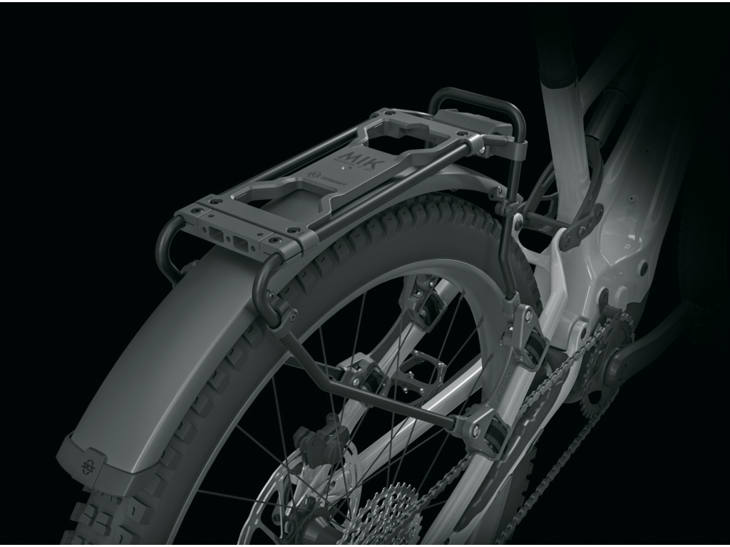 Blatník s černým matným povrchem je diskrétně integrován pod nosič zavazadel. Díky pružné sendvičové konstrukci, v níž jsou ultrajemné hliníkové proužky zapuštěny do plastové vrstvy, je INFINITY UNIVERSAL MUDGUARD mimořádně robustní, tuhý a odolný proti korozi. Blatníky jsou k dispozici ve dvou šířkách profilu 56 nebo 75 mm.