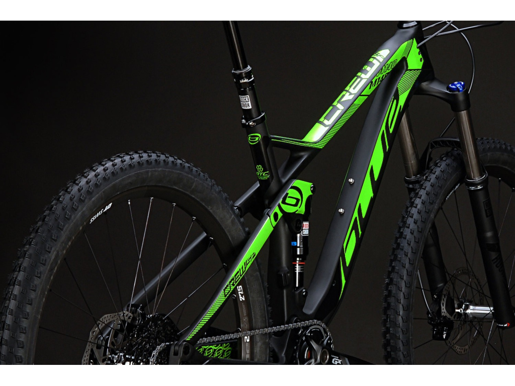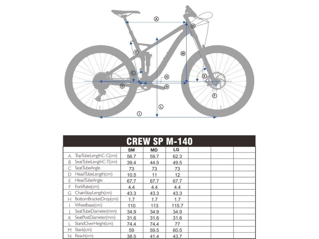 Blue Crew SP M140 je celoodpružený All Moutain bike vhodný pro náročné traily, ať už jde o výjezdy nebo obtížné sjezdy. Celokarbonový rám se zdvihy 140 mm je osazen špičkovými 27,5palcovými koly DT Swiss M1700, vzduchovým odpružením Rock Shox a řazen