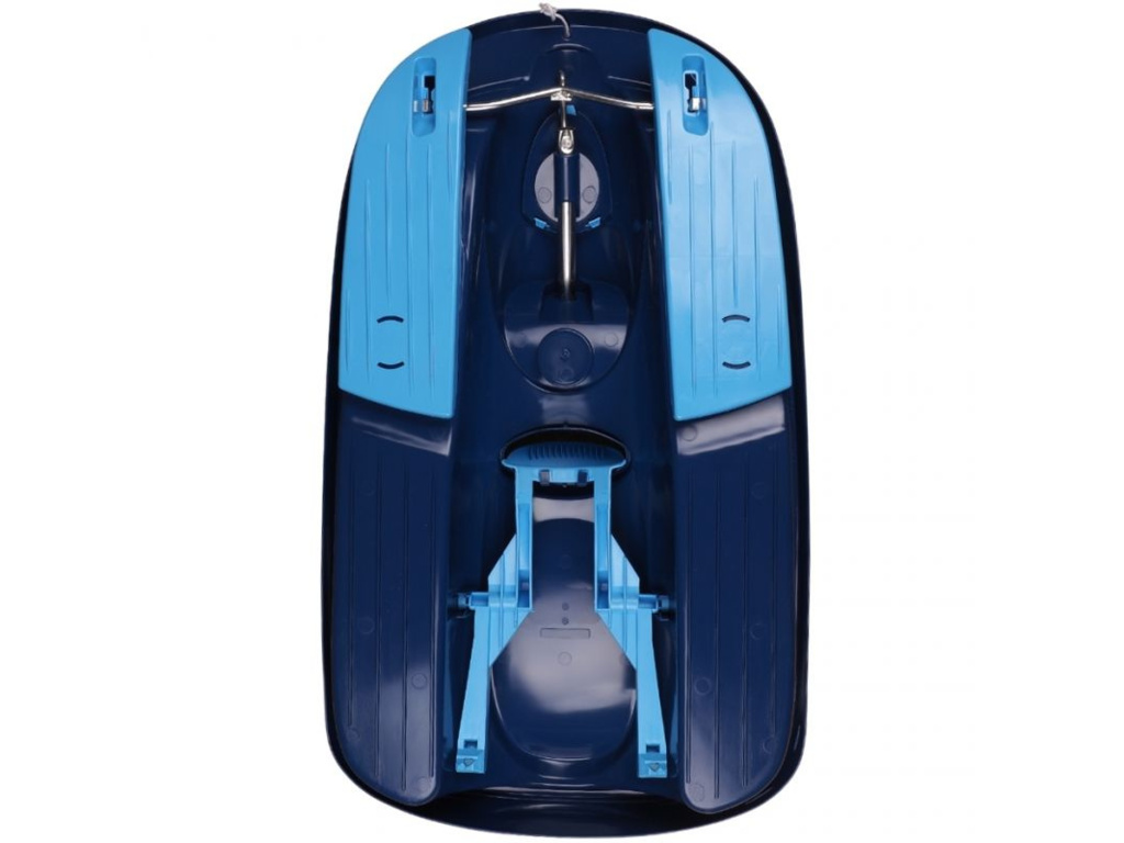 Hamax Sno Surf jsou moderní boby s volantem, které spojují odolnost, kontrolu a zábavu v jednom. Výrazný modrý design podtrhuje jeho sportovní charakter, zatímco robustní konstrukce zaručuje stabilitu i při vyšší rychlosti. Řízení je zajištěno pomocí volantu, který přesně ovládá přední lyžinu. Díky tomu lze snadno zatáčet a udržovat směr i na tvrdém, zledovatělém povrchu. Integrovaná ruční brzda s kovovými hroty poskytuje jisté a okamžité zpomalení, což výrazně zvyšuje bezpečnost jízdy.