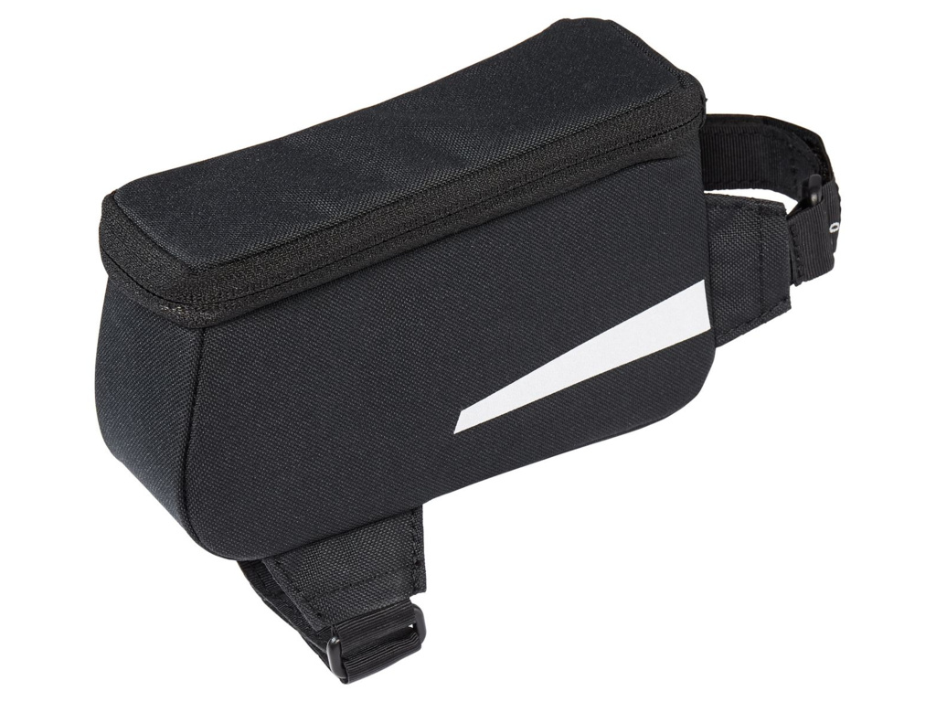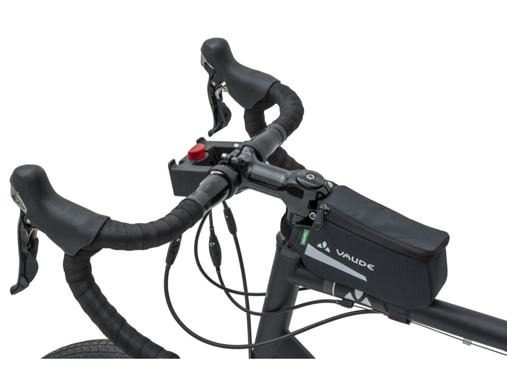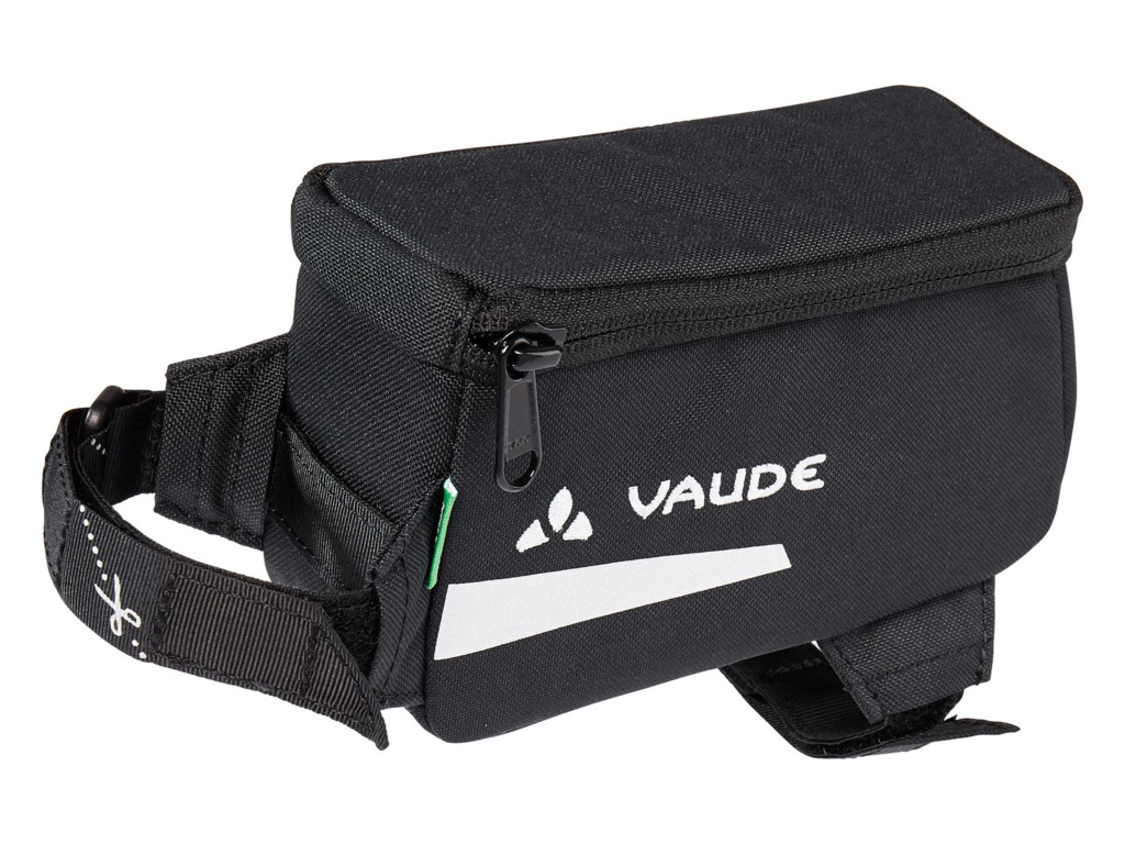 Černá brašna na horní rámovou trubku VAUDE s vnitřním měkkým polstrováním pro uložení mobilního telefonu, energetické tyčinky nebo peněz vyrobená z ekologického materiálu šetrného k přírodě.