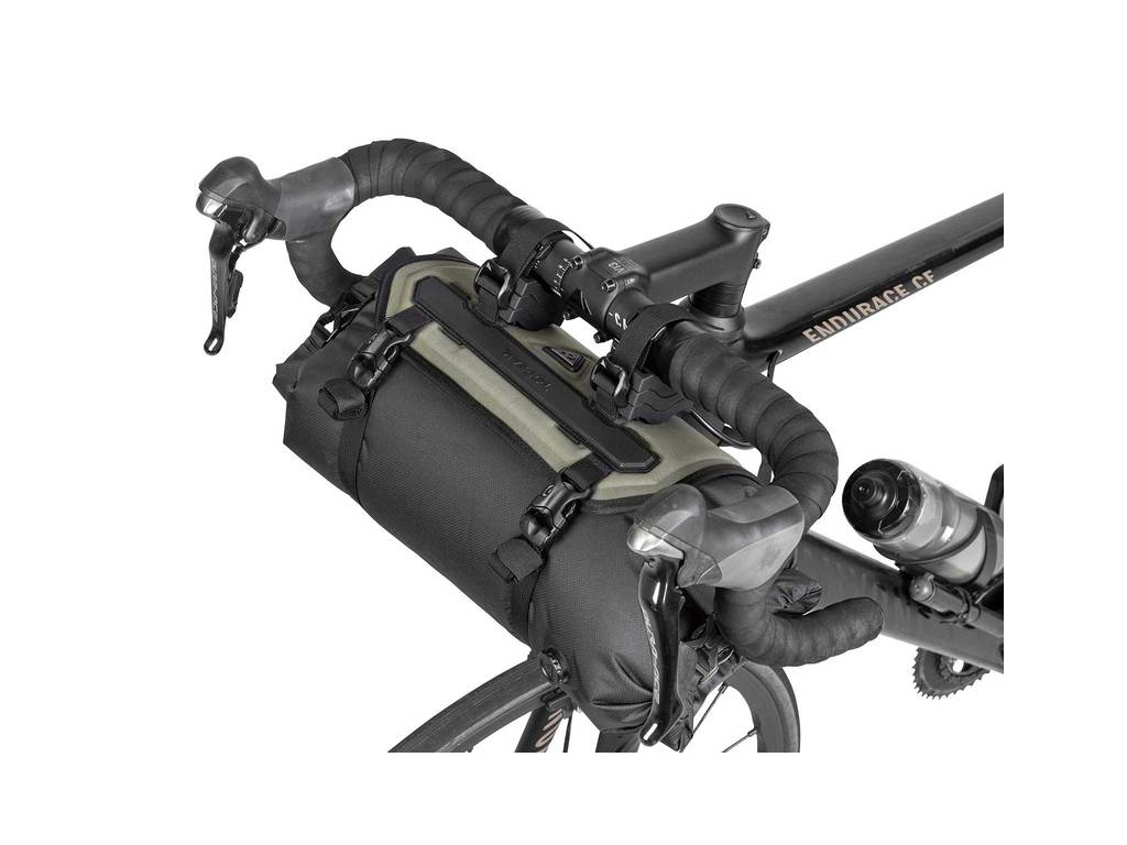 Velkokapacitní expediční brašna na řidítka pro delší výlety na kole, tentokrát v trendové olivové barvě. Doplňuje sortiment expedičních brašen LOADER z nové série BIKEPACKING. Toto přepravní řešení o objemu 8 litrů je ideální pro lehké a skladné věci jako spacák, karimatku, kempinkovou výbavu nebo oblečení. Tato novější verze zahrnuje vylepšené uchycení na řidítka a na trubku hlavového složení.