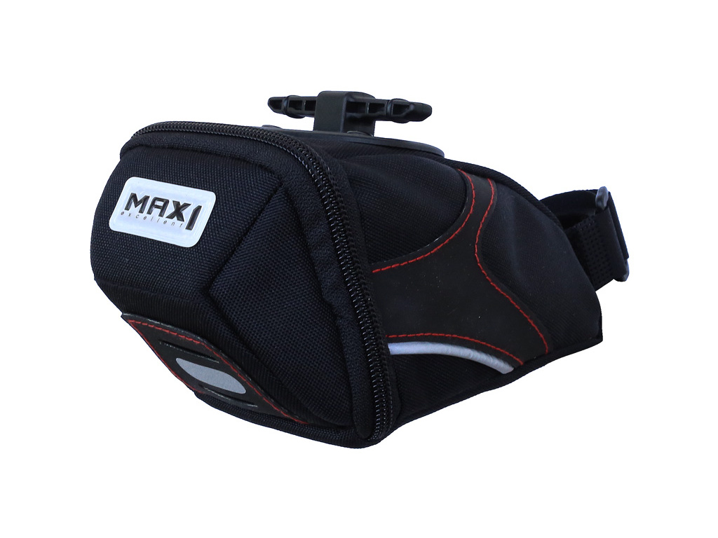 Podsedlová brašna MAX1 Race s T držákem střední velikosti. Speciální T držák zajišťuje jednoduchou a rychlou montáž bez nutnosti použití nářadí. Díky držáku je brašna dokonale fixována pod sedlem. Držák je kompatibilní s většinou klasických sedel. Brašna je vybavena reflexními prvky v zadní a boční části - technologie 3M Scotchlite. Barevné prošití a vyztužení boční části zajišťuje pevnost brašny při naplnění. Brašna je vybavena držákem pro blikačku v zadní části, jednoduše tak umístíte Vaši blikačku bez nutnosti montáže držáku.